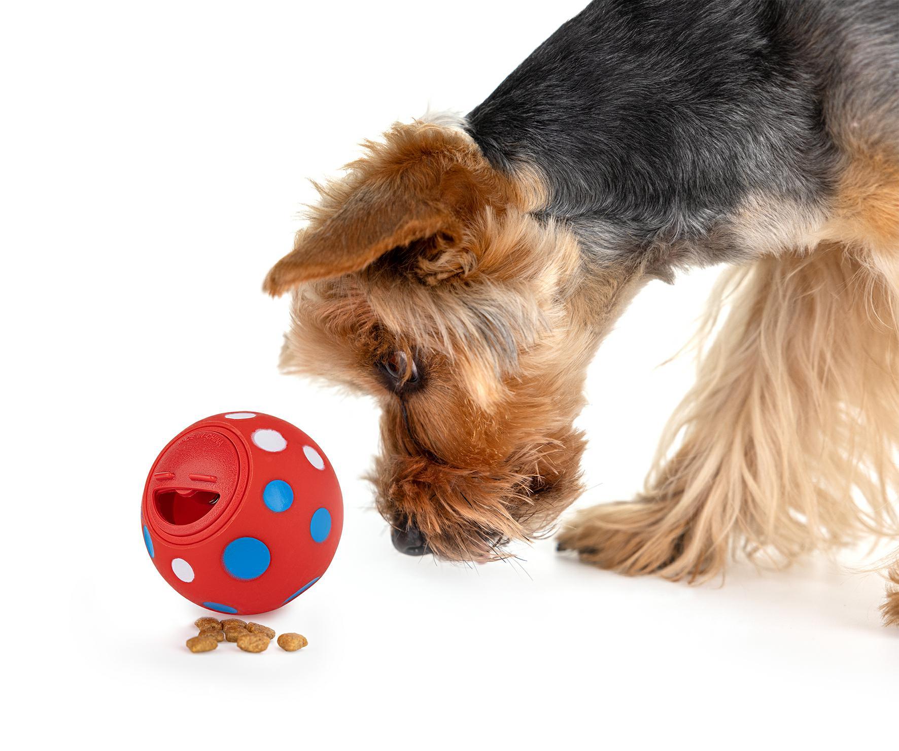 Jak to działa? Do otworu w piłce włóż ulubiony przysmak pupila. Otwór możesz całkowicie zamknąć, tak, żeby zabawka jedynie pachniała smaczkiem, lub pozostawić minimalnie otwarty, żeby ostatecznie po długiej zabawie smaczek wypadł jako nagroda dla pupila.