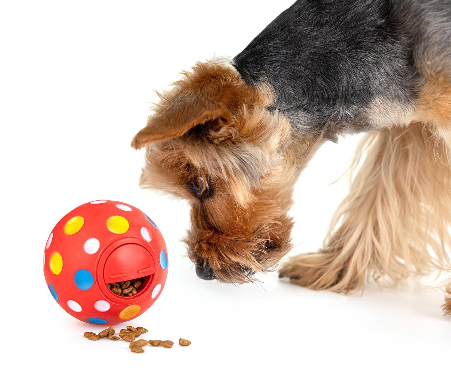 Jak to działa? Do otworu w piłce włóż ulubiony przysmak pupila. Otwór możesz całkowicie zamknąć, tak, żeby zabawka jedynie pachniała smaczkiem, lub pozostawić minimalnie otwarty, żeby ostatecznie po długiej zabawie smaczek wypadł jako nagroda dla pupila.
