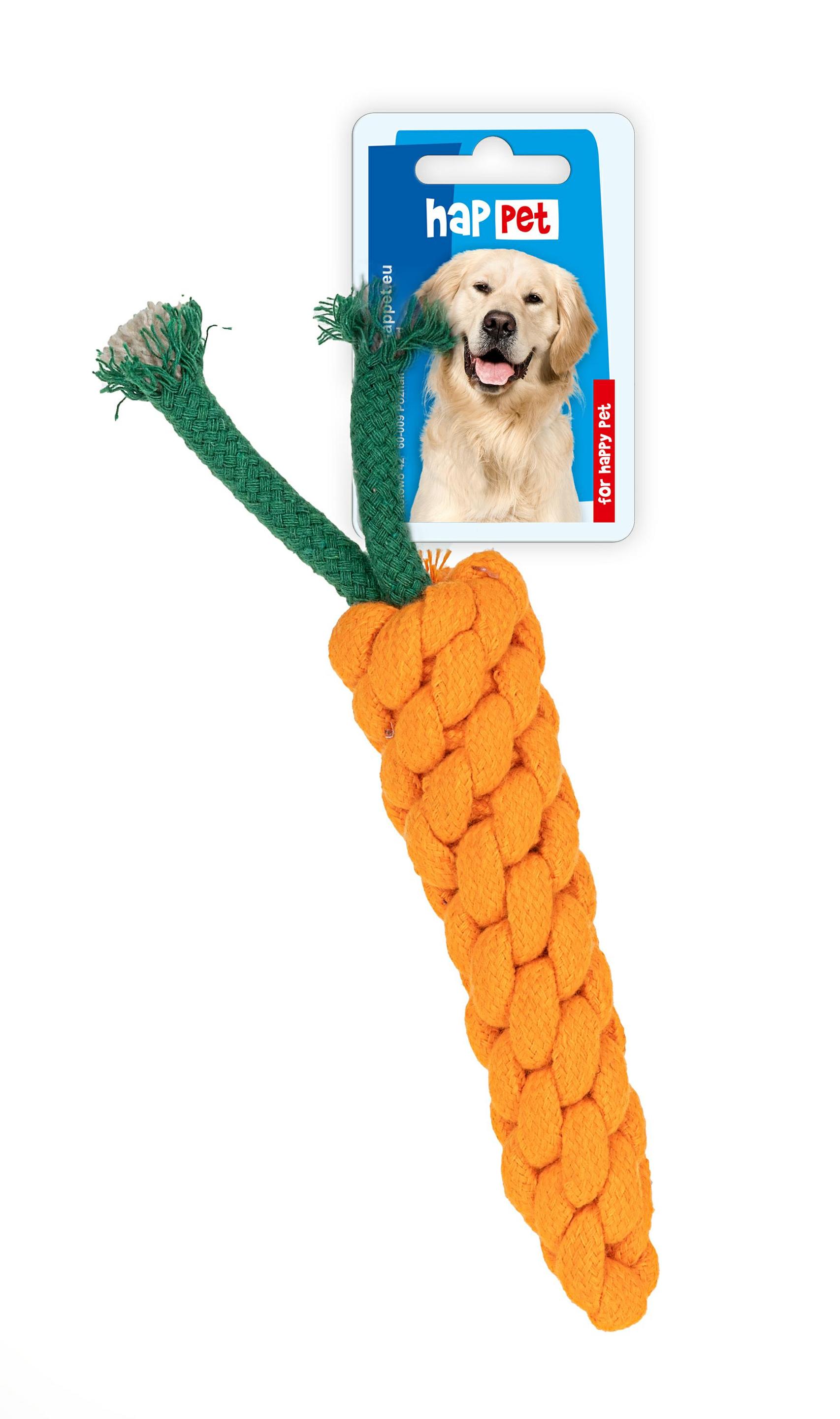 Sznurkowe zabawki zostały wykonane z trwałego materiału, w pełni bezpiecznego dlazwierząt. Dostępne są kształty: kulka z pętlą, kulka, kulka z dwiema pętlami, marchewka,toroid.