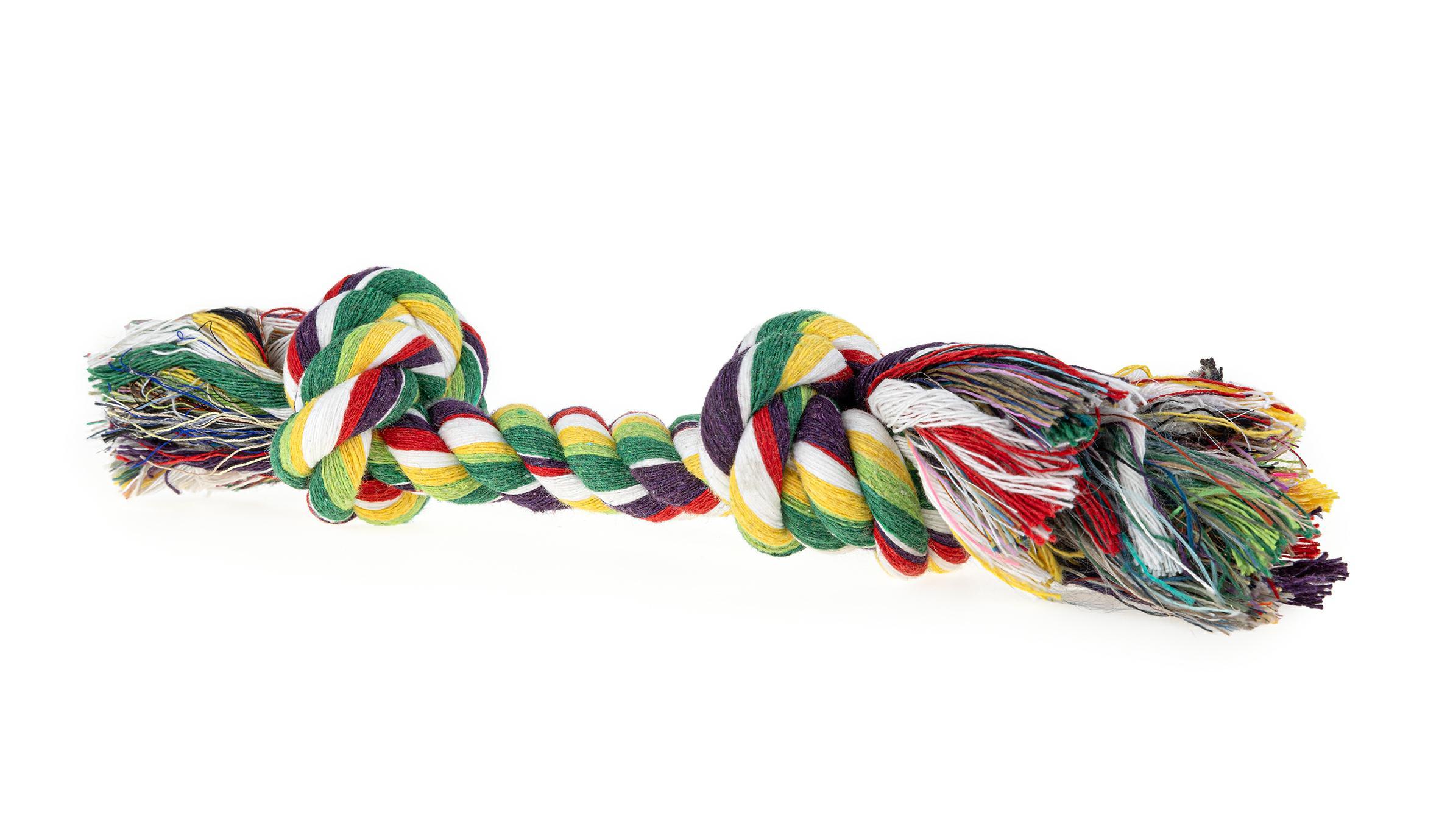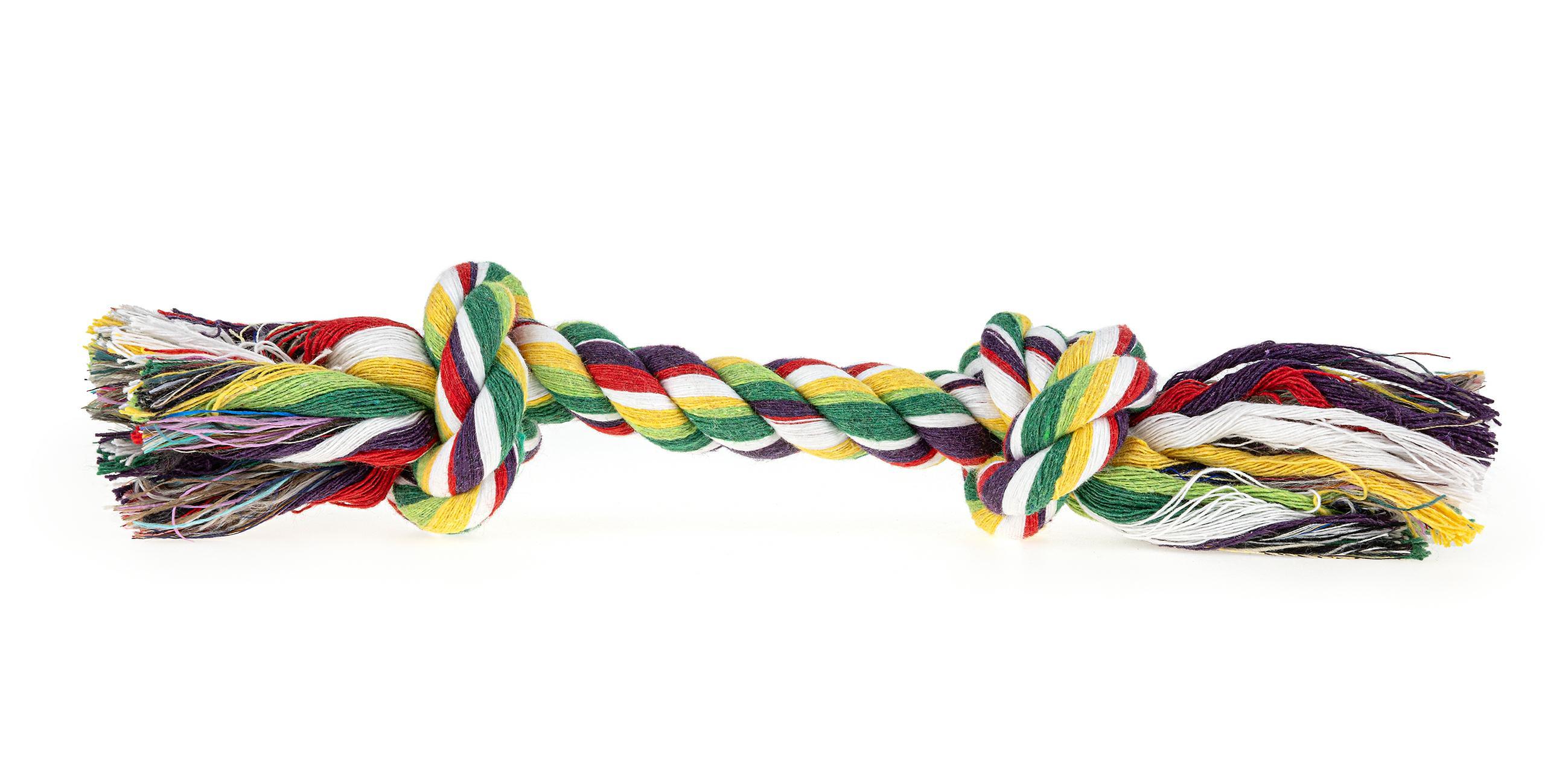Zabawka wykonana z trwałego, kolorowego sznurka, z mocno zawiązanymi supłami na obu końcach. Dzieki solidnemu splotowi, przetrwa intensywne gryzienie i szarpanie. Podczas zabawy, włókna sznurka skutecznie czyszczą zęby psa, co wspomaga higienę jamy ustnej. Idealna do aportowania, przeciągania, a także umila czas czworonogom oczekującym na powrót właściciela. Przeznaczona dla dużych i średnich psów.