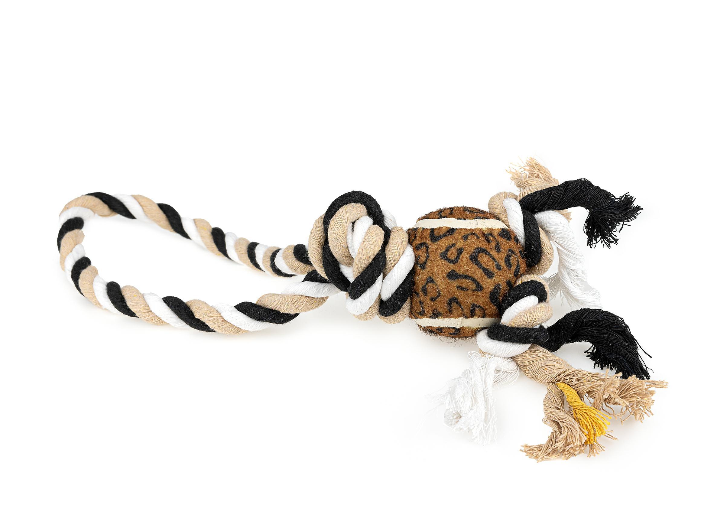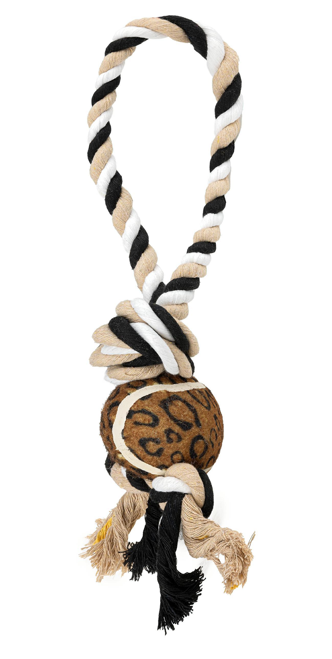 Ta solidna zabawka została wykonana z wytrzymałego sznurka, zawiązanego w pętlę, z dołączoną piłką. Dzięki mocnemu splotowi przetrwa intensywne gryzienie i szarpanie. Podczas żucia włókna sznurka dostają się między zęby, co pomaga w utrzymaniu higieny jamy ustnej psa.