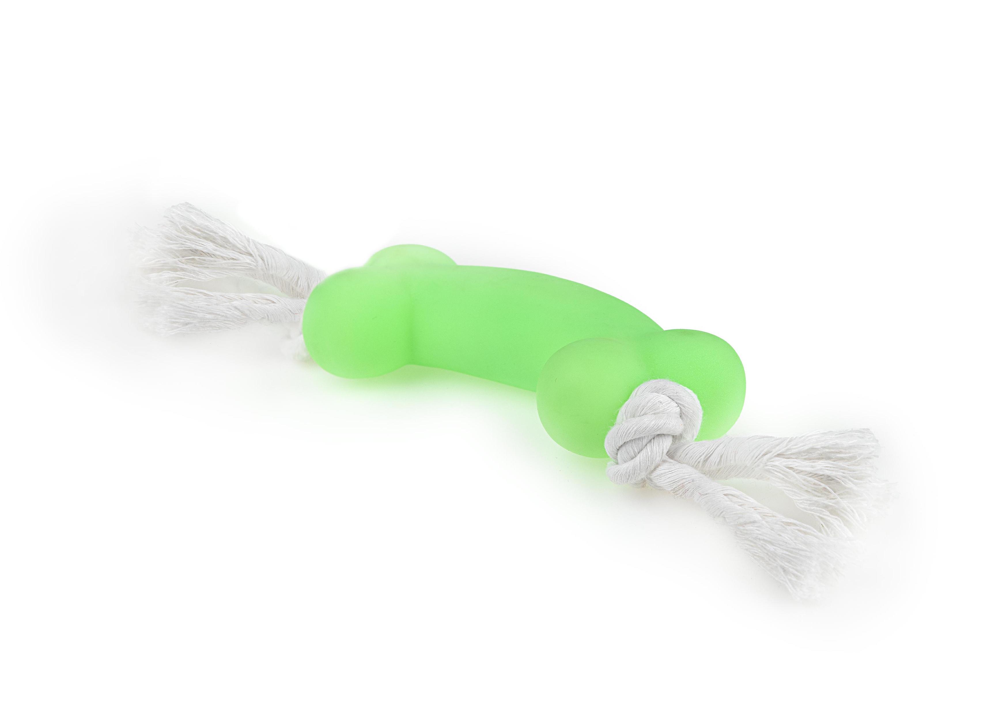 Zabawka została stworzona z wytrzymałego sznurka, na którym znajduje się solidna kość. Dzięki mocnemu splotowi, zabaweczka wytrzyma długotrwałe gryzienie i szarpanie. Podczas żucia, włókna sznurka dostają się między zęby, co wspiera higienę jamy ustnej psa. Zabawka idealnie nadaje się do zabaw w aportowanie oraz przeciąganie, umilając czas czworonogom, gdy czekają na powrót właściciela. Przeznaczona jest dla dużych i średnich psów.