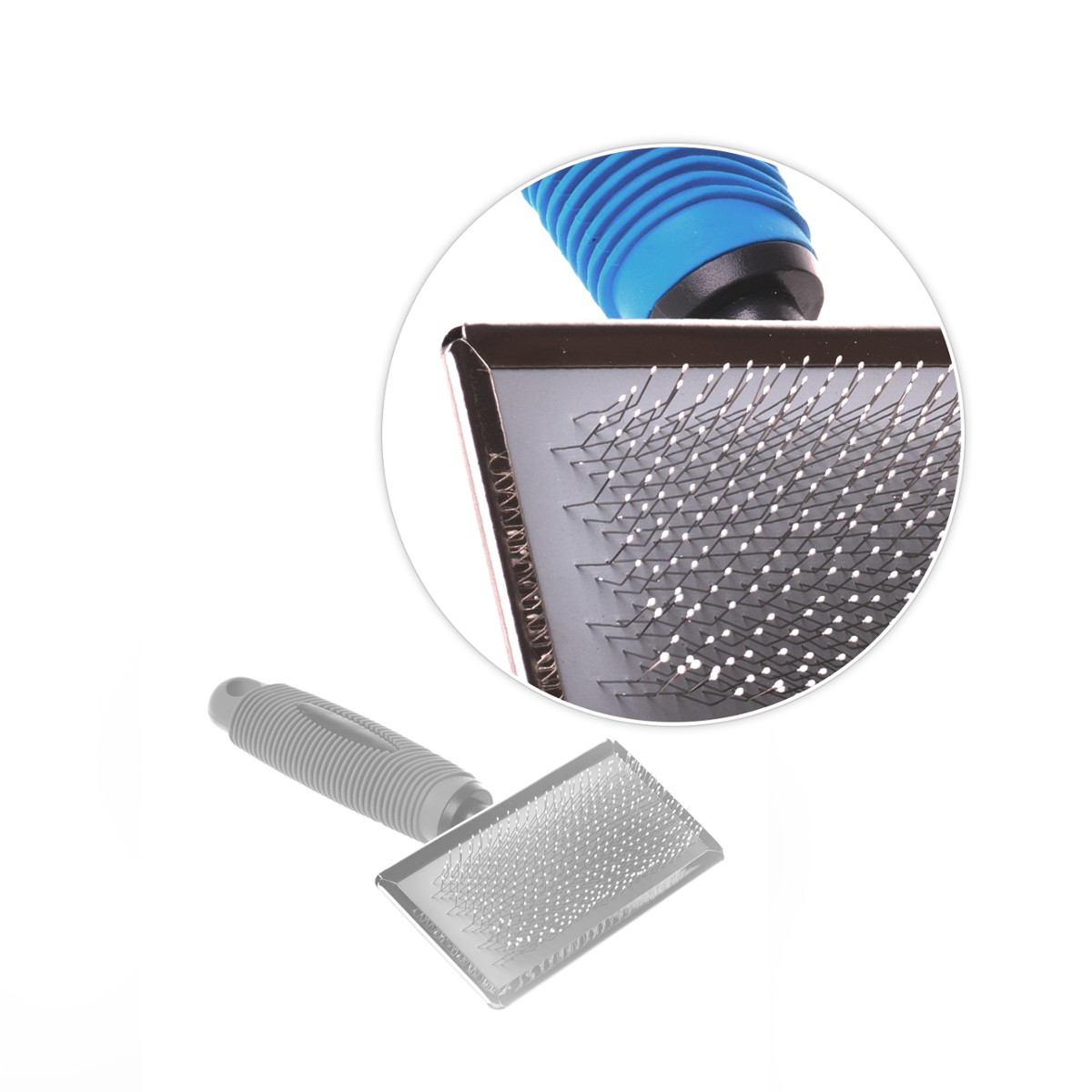 Nasze zgrzebło jest szczególnie polecane dla zwierząt z delikatną skórą oraz rzadkim podszerstkiem. Regularne czesanie zapewnia Twojemu pupilowi dobre samopoczucie oraz zdrowy wygląd. Ergonomiczna, antypоślizgowa rękojeść sprawia, że zgrzebło wygodnie leży w dłoni, co ułatwia jego użycie.