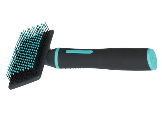 Ergonomiczny uchwyt z miękkim wykończeniem SOFT TOUCH oraz gumowymi wypustkami zapewnia wygodę użytkowania. Produkt wykonany jest z trwałego tworzywa ABS, co gwarantuje jego długowieczność. Metalowe elementy, takie jak ostrza i zęby, są ze stali nierdzewnej, co dodatkowo podnosi jakość szczotki.