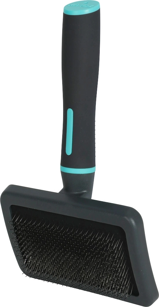 Zaprojektowaliśmy nowy uchwyt, który zapewnia większą wygodę użytkowania i idealnie leży w dłoni, dzięki ergonomicznemu kształtowi, miękkiemu i przyjemnemu w dotyku wykończeniu SOFT TOUCH oraz powłoce z gumy termoplastycznej i miękkim wypustkom. Dodatkowo, niezależnie od rozmiaru produktu, uchwyt ma jeden rozmiar, który idealnie leży w dłoni. Dzięki elastycznym, zakrzywionym igłom umożliwia szczotkowanie podszerstka: rozczesuje, usuwa martwy podszerstek i wygładza sierść.