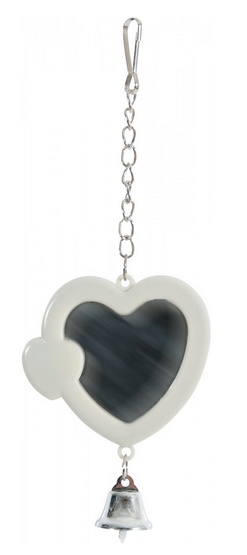 Zolux Lusterko serce na łańcuszku z dzwonkiem to doskonały dodatek do klatki dla ptaków. Dzięki praktycznemu karabińczykowi, można je łatwo przymocować w dowolnym miejscu. Ozdobny dzwoneczek przyciąga uwagę ptaków, co sprawia, że zabawka nie tylko bawi, ale także stymuluje ich intelektualnie. Urozmaica przestrzeń klatki, czyniąc ją bardziej interesującą dla Twojego pupila.