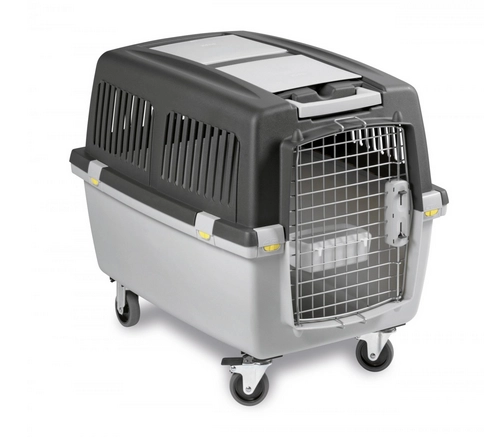 Zgodny z normami IATA (uznanymi prawie przez wszystkie linie lotnicze). Stabilny transporter z metalowymi drzwiczkami. Bezpieczne, zamykane zatrzaski. Szeroki uchwyt z przodu, idealny do ciągnięcia (pakiet nie zawiera zestawu kółek). Wyposażony w miskę na pokarm (mocowana do drzwi) oraz 2 schowki. Szczeliny zapewniają odpowiednią cyrkulację powietrza. Wykonany z tworzywa sztucznego i metalu.