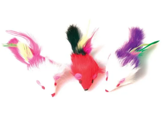 Zabawka dla kota w postaci zestawu trzech kolorowych myszek z piórami. To doskonała rozrywka dla Twojego pupila, idealna do podrzucania oraz noszenia w pyszczku. Dzięki swojej lekkiej konstrukcji, każda myszka waży zaledwie 1 gram, co sprawia, że są łatwe do chwytania i zabawy. Wprowadź radość do codziennych chwil swojego kota z tym zestawem!