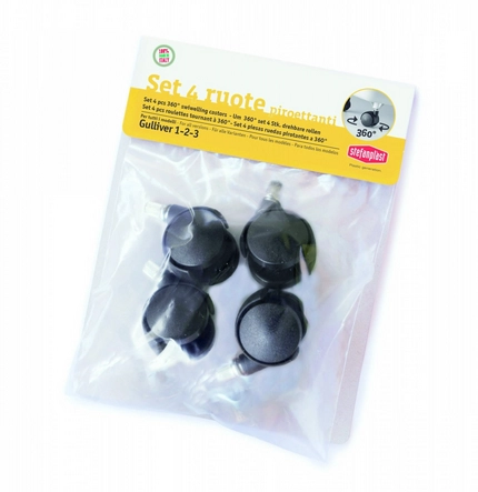 Zestaw czterech kółek do transportera. Pasują do wszystkich modeli Gulliver IATA 1, 2 oraz 3. Kółka do transportera Gulliver pozwalają na dużo sprawniejsze i wygodniejsze podróżowanie. Okazuje się to szczególnie przydatne w zatłoczonych miejscach lub wtedy, gdy musisz pokonać dużą odległość. Kółka są wytrzymałe. Istnieje możliwość ich zablokowania.