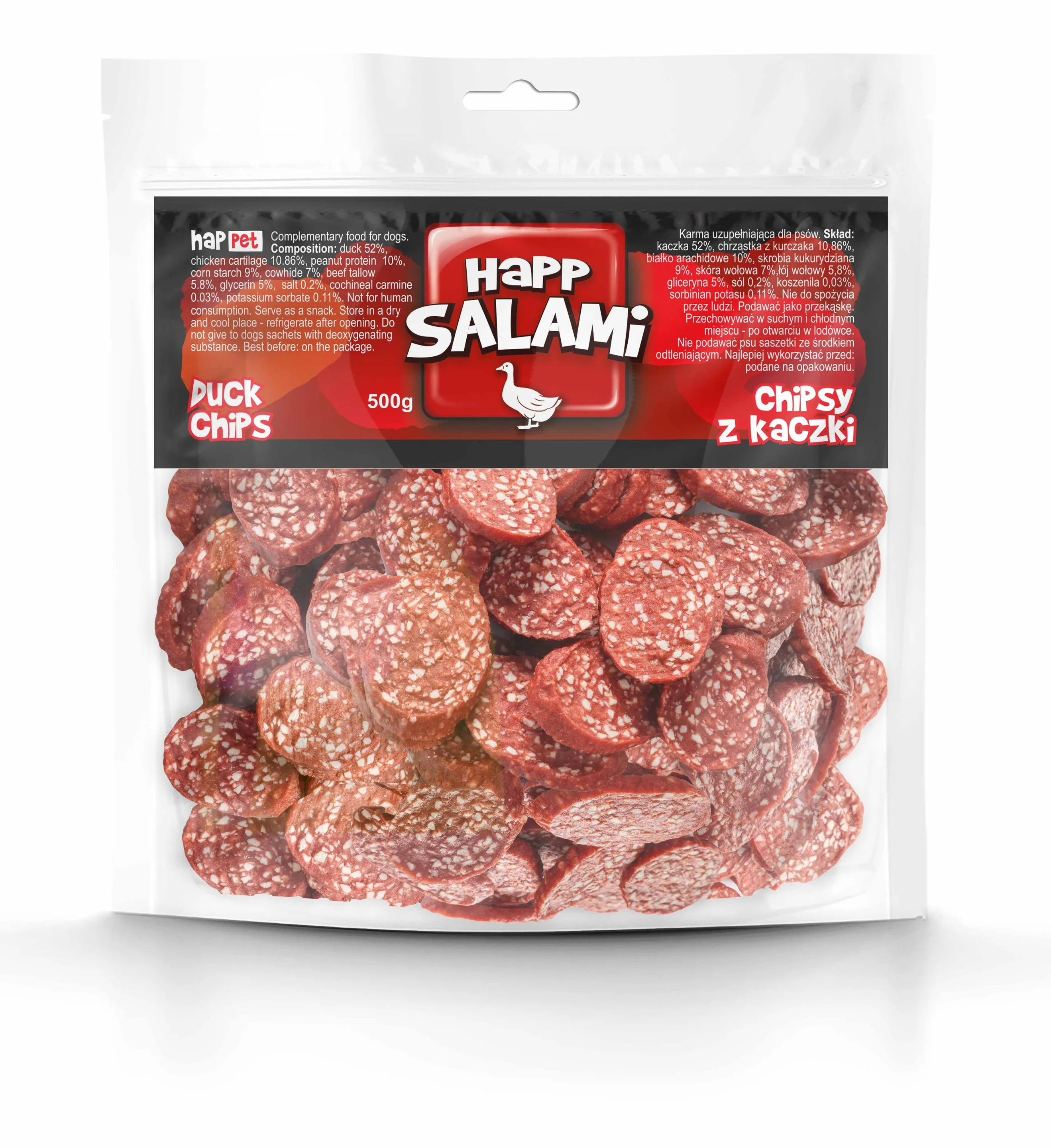 Podaruj swojemu psu wyjątkowy przysmak w postaci chipsów z salami z kaczki! Te przekąski nie tylko zachwycają autentycznym wyglądem, ale również intensywnym aromatem, który przyciągnie uwagę każdego pupila.