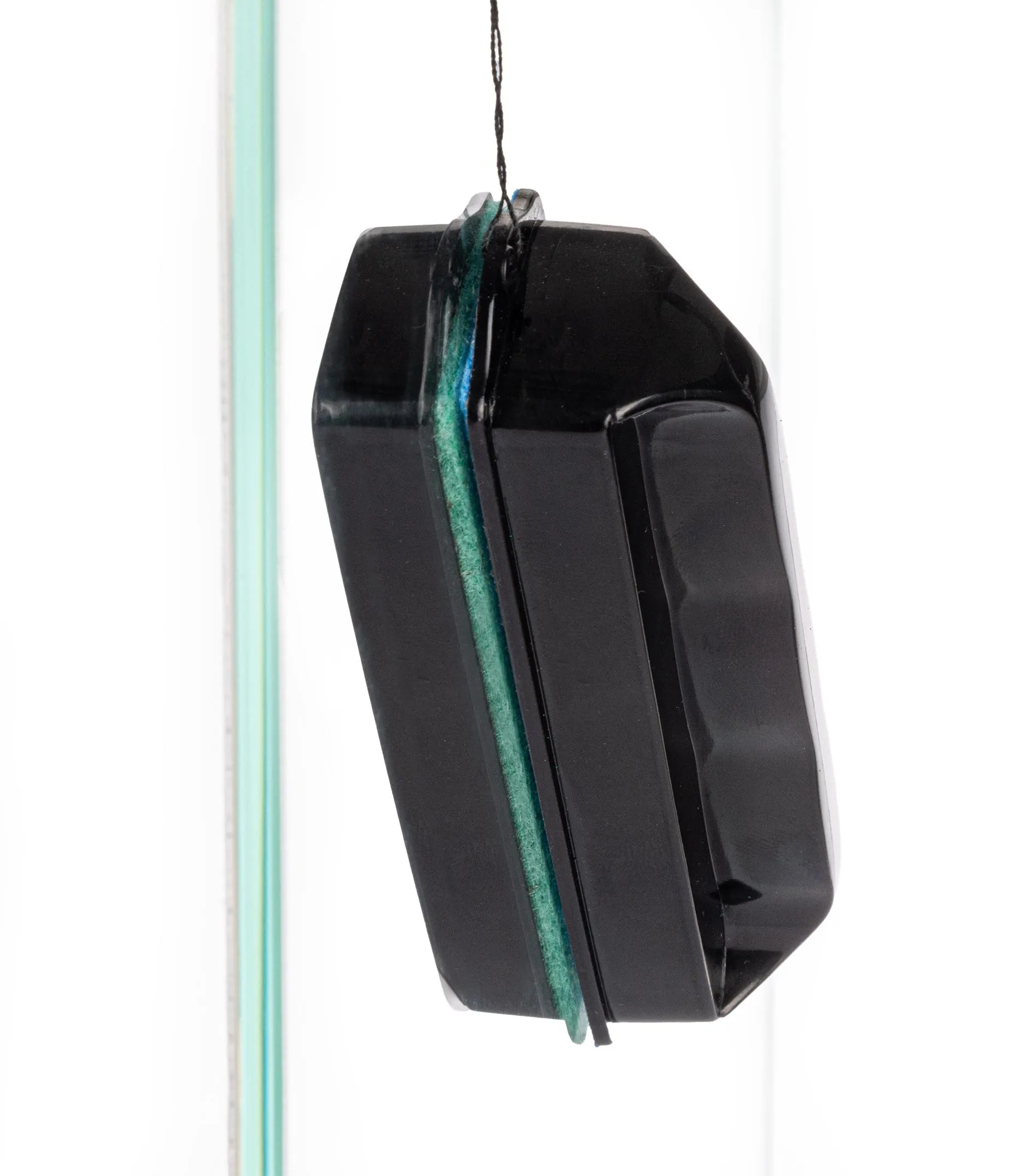 W skład czyścika wchodzą dwie części: szorstka strona umieszczana w akwarium oraz uchwyt, który trzymasz z zewnątrz. Silne magnesy zapewniają stabilne połączenie obu części, co ułatwia czyszczenie. Po rozłączeniu, czyścik opada na dno, ale w opakowaniu znajdziesz nitkę, dzięki której łatwo go wyciągniesz.