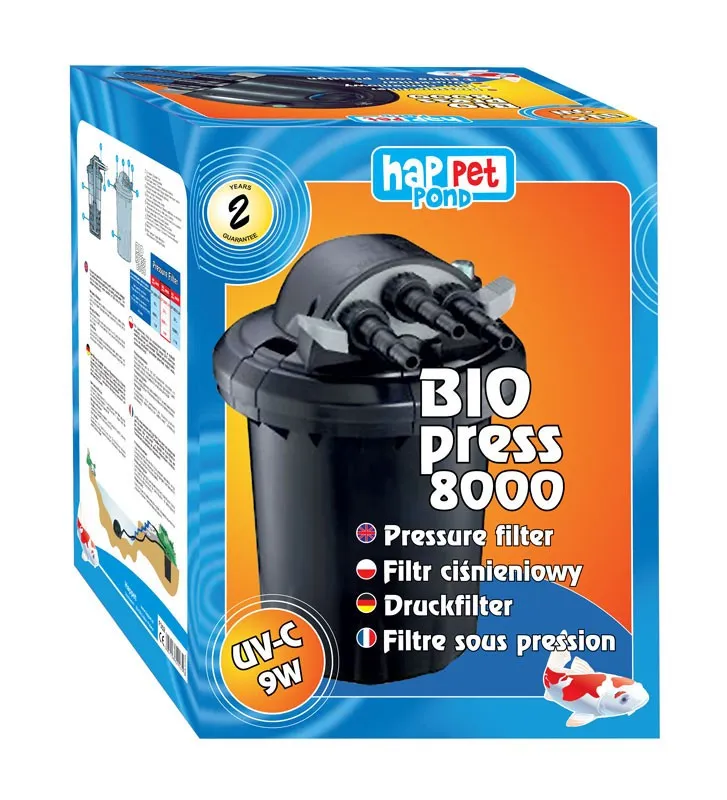 Filtr ciśnieniowy BIOpress 8000 to idealne rozwiązanie dla średnich oczek wodnych o pojemności do 8000 litrów. Zapewnia efektywną filtrację mechaniczną i biologiczną, co przyczynia się do czystości wody oraz zdrowego środowiska dla ryb i roślin.