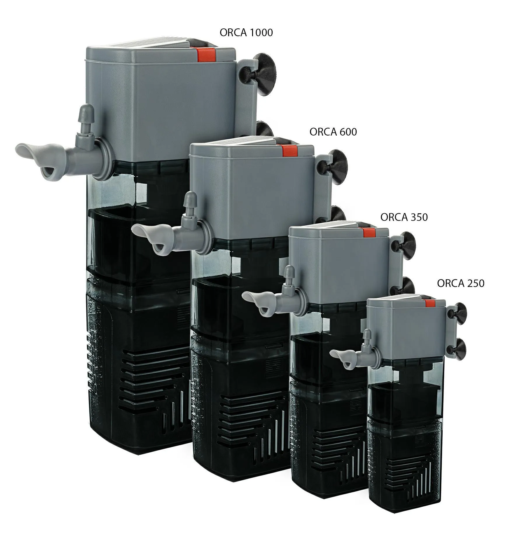 Filtr wewnętrzny Orca 1000 to idealne rozwiązanie dla akwariów o pojemności od 250 do 500 litrów. Dzięki wysokiej wydajności filtracji mechanicznej, biologicznej i chemicznej, zapewnia czystą i zdrową wodę dla Twoich ryb i roślin.