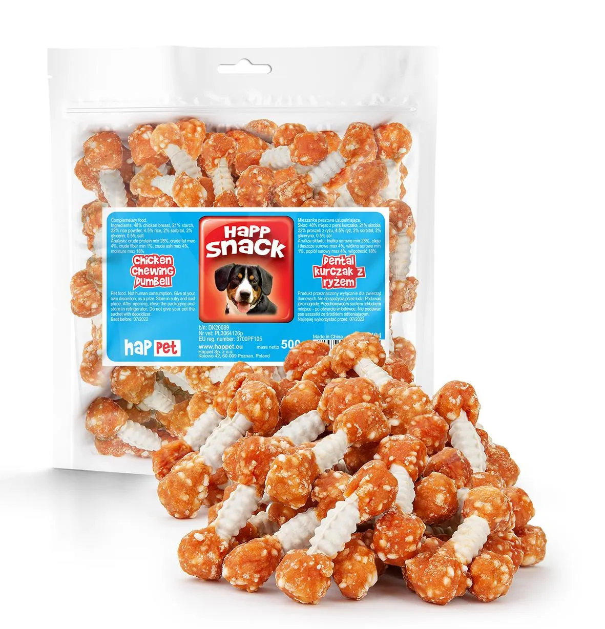 Opakowanie zawiera 0,5 kg produktu, co zapewnia długi czas użytkowania. Pamiętaj, aby podawać przysmak między posiłkami. Przekąski nie zastępują podstawowego pokarmu, a ich celem jest urozmaicenie diety. Nie zaleca się podawania szczeniętom poniżej 3 miesiąca życia.