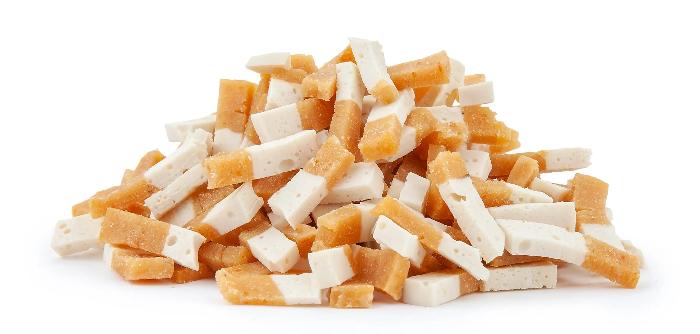 Długość przysmaku: 2-3 cm. Produkt wolny od sztucznych konserwantów i barwników.