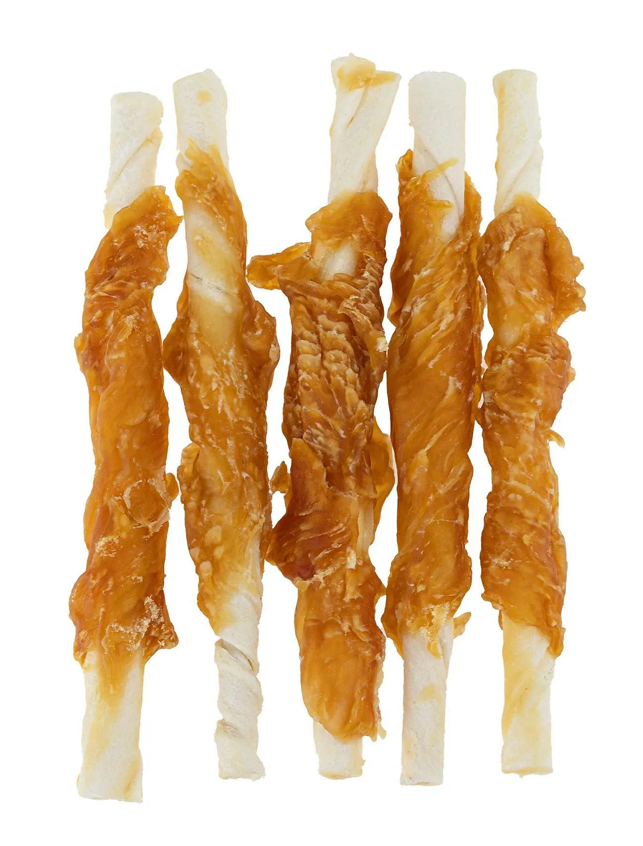 Aromatyczne paski z piersi kurczaka owinięte na pałeczki to idealny przysmak dla Twojego psa. Dzięki wysokiej jakości składnikom, stanowią one doskonałe uzupełnienie codziennej diety. Naturalny, mięsny aromat sprawia, że każdy pies chętnie sięga po ten smakołyk.