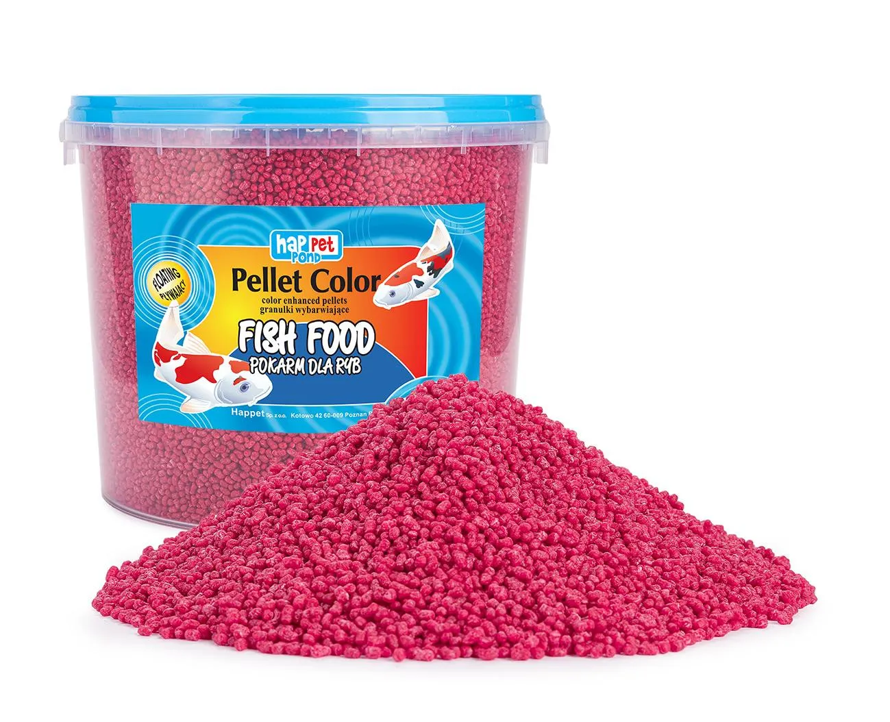 Oferujemy granulki wybarwiające Happet w wiaderku o pojemności 10L, które stanowią pełnowartościowy pokarm dla karpi koi, karasi oraz innych ryb stawowych. Dzięki zastosowaniu naturalnego czerwonwego barwnika, pokarm ten znacząco wpływa na intensyfikację czerwonego ubarwienia ryb.