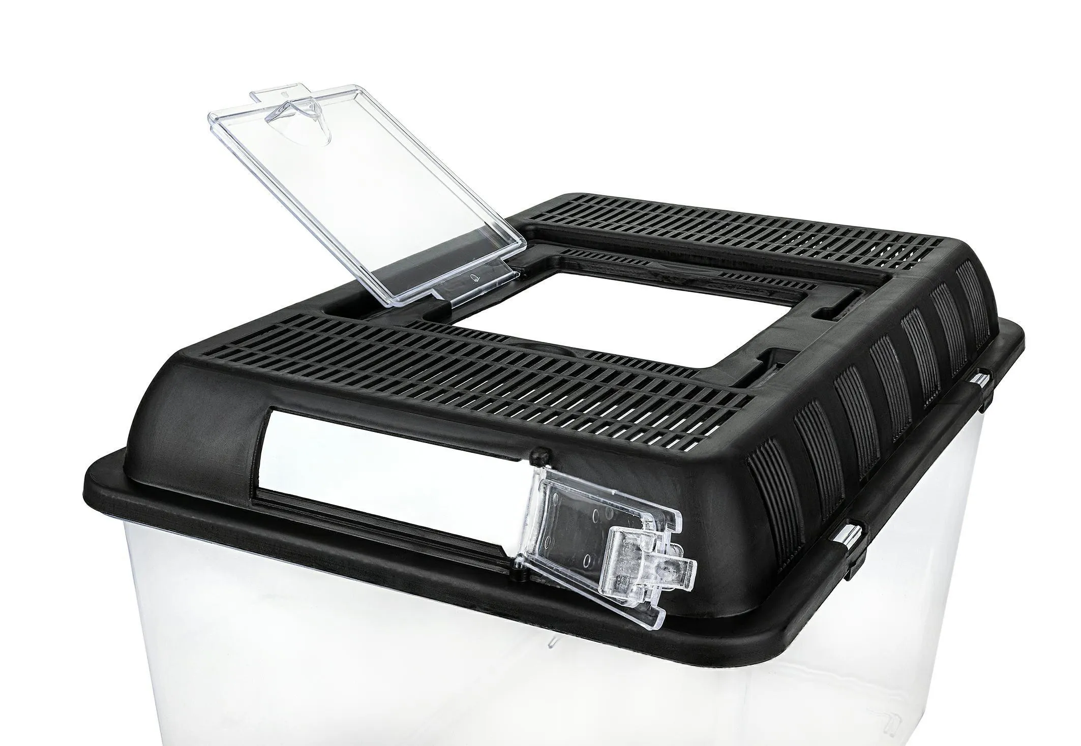 Pojemnik TERRA BOX to lekki i poręczny transporter, idealny do hodowli niewielkich gadów, płazów, pajęczaków, gryzoni oraz owadów karmowych. Wykonany z przezroczystego plastiku, umożliwia łatwe monitorowanie zwierząt wewnątrz.
