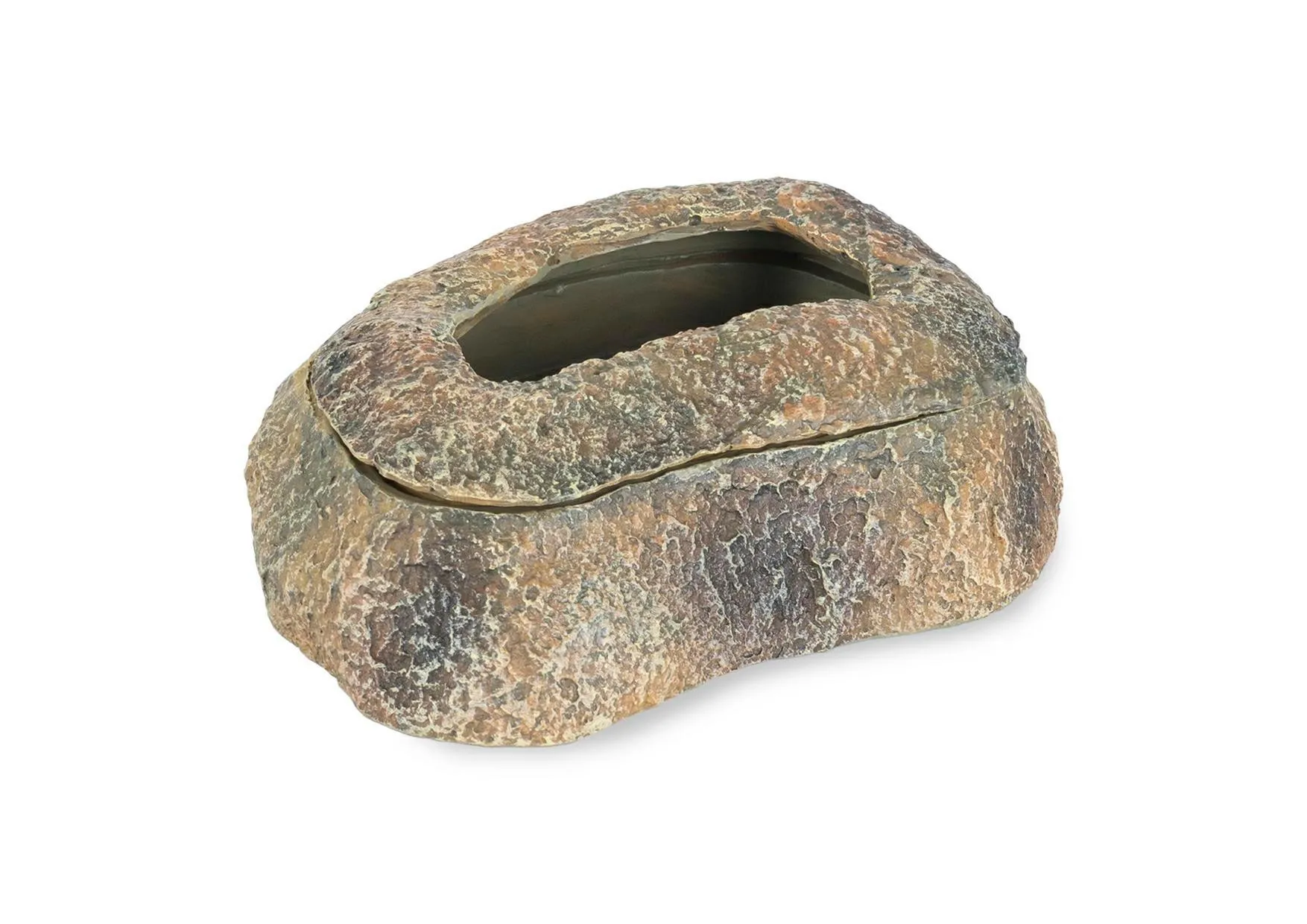 Oferujemy naturalistycznie wyglądającą miskę do terrarium, idealną dla małych i średnich zwierząt terraryjnych. Dzięki zdejmowanej pokrywce z otworem, możesz dostosować miskę do potrzeb swojego pupila oraz rodzaju podawanego pokarmu.