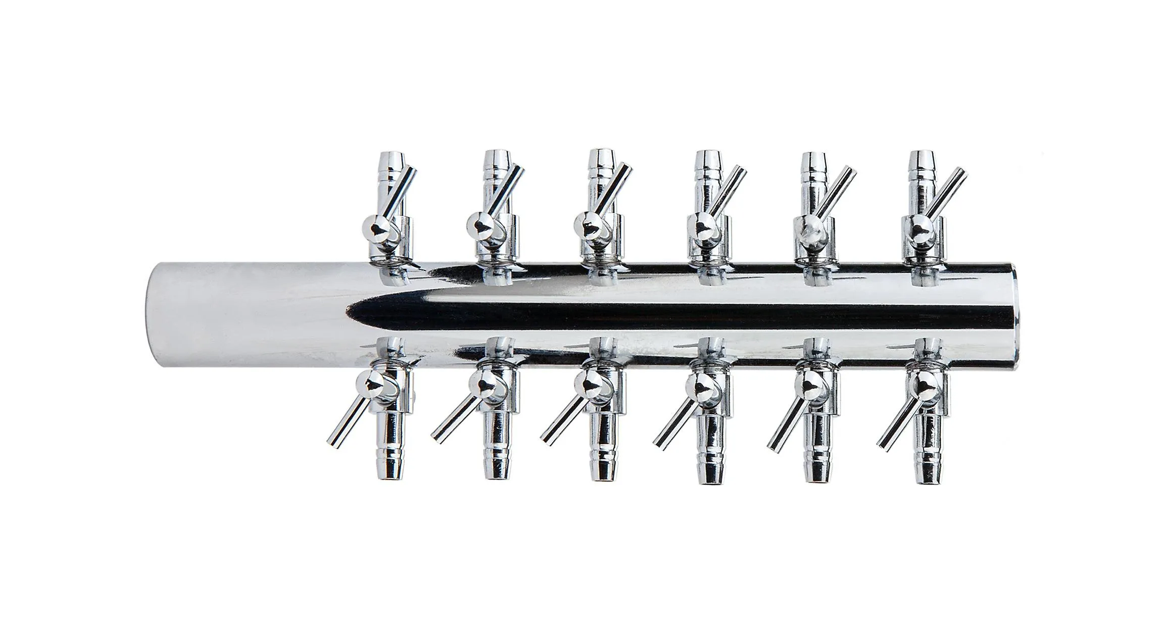 Trwały rozdzielacz powietrza, który z pewnością spełni Twoje oczekiwania. Dzięki 12 wyjściom z precyzyjnymi zaworkami, umożliwia efektywne zarządzanie przepływem powietrza. To idealne rozwiązanie do zastosowań, gdzie potrzebna jest kontrola nad wieloma źródłami powietrza.