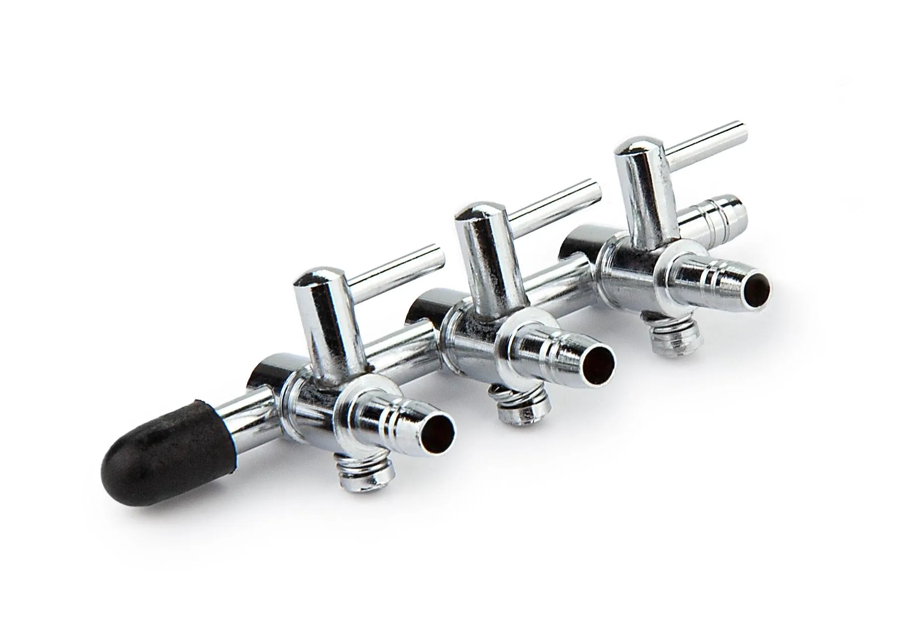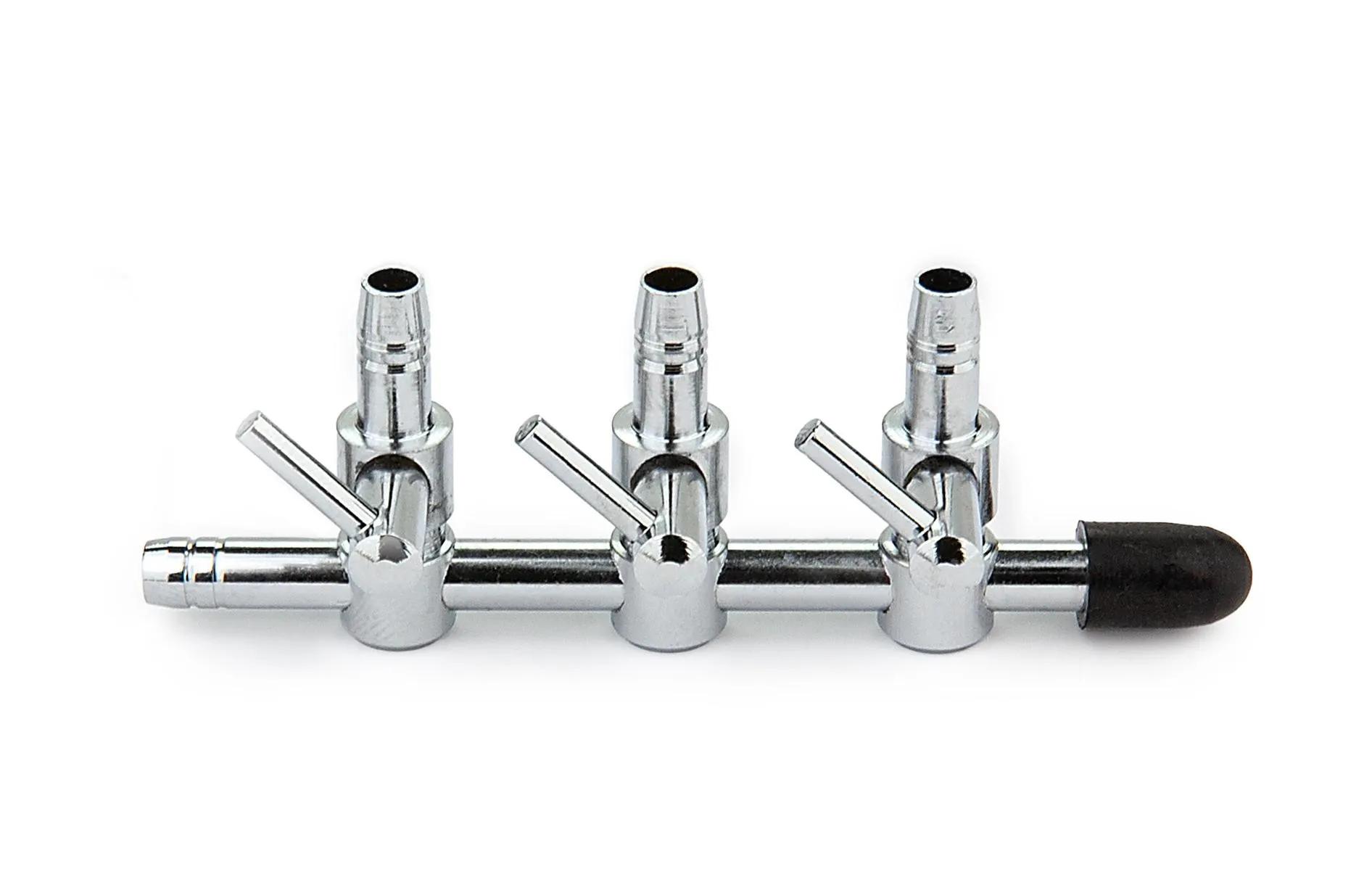 Trwały metalowy rozdzielacz powietrza, który umożliwia wygodne podłączenie trzech wyjść. Został wyposażony w precyzyjne zaworki, co pozwala na dokładne regulowanie przepływu powietrza. W zestawie znajduje się pięć sztuk, co zapewnia praktyczne rozwiązanie dla różnych zastosowań.