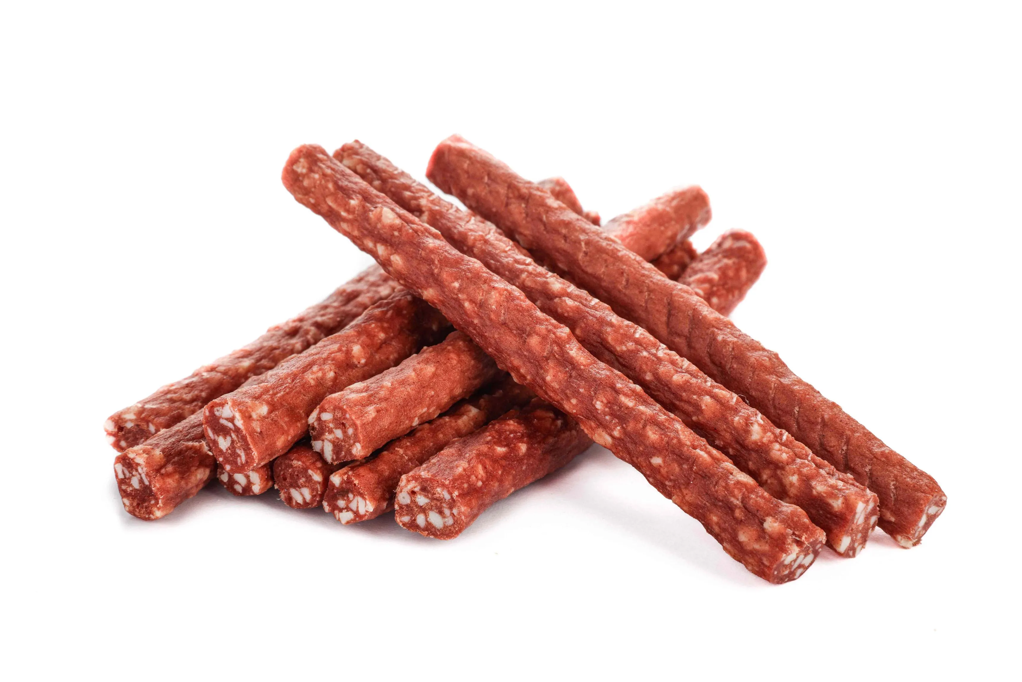 Salami wołowe pałeczki to doskonały wybór jako nagradzający smakołyk lub przekąska między posiłkami. Zaskocz swojego pupila autentycznym wyglądem prawdziwego salami!