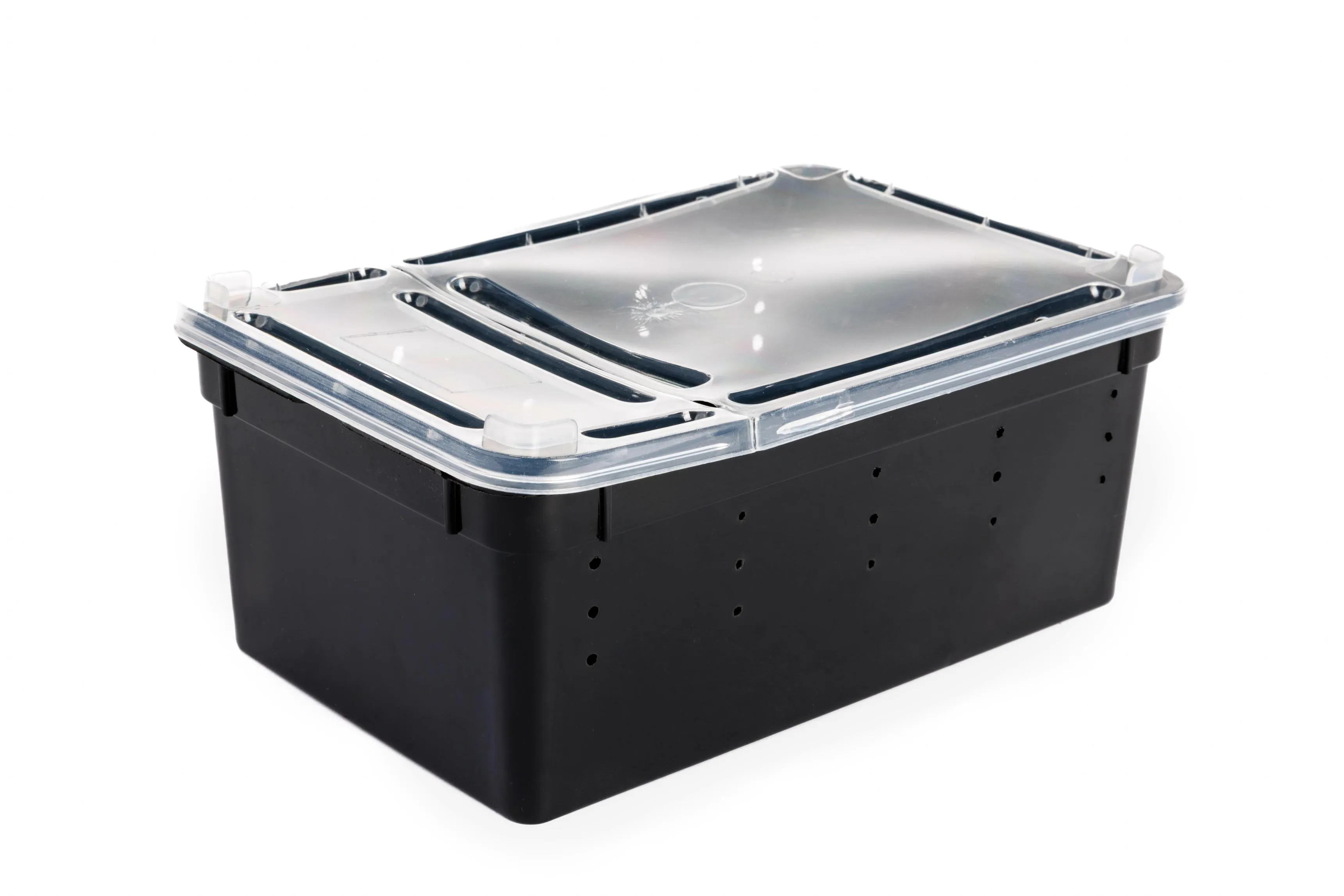 Pojemnik plastikowy TERRA BOX BLACKPojemnik hodowlany o wymiarach 19 cm długości, 12,5 cm szerokości oraz 7,5 cm wysokości, idealnie sprawdzi się podczas giełd i wystaw. Dzięki czarnym ściankom, ogranicza stres u zwierząt, co jest istotne w trakcie transportu…