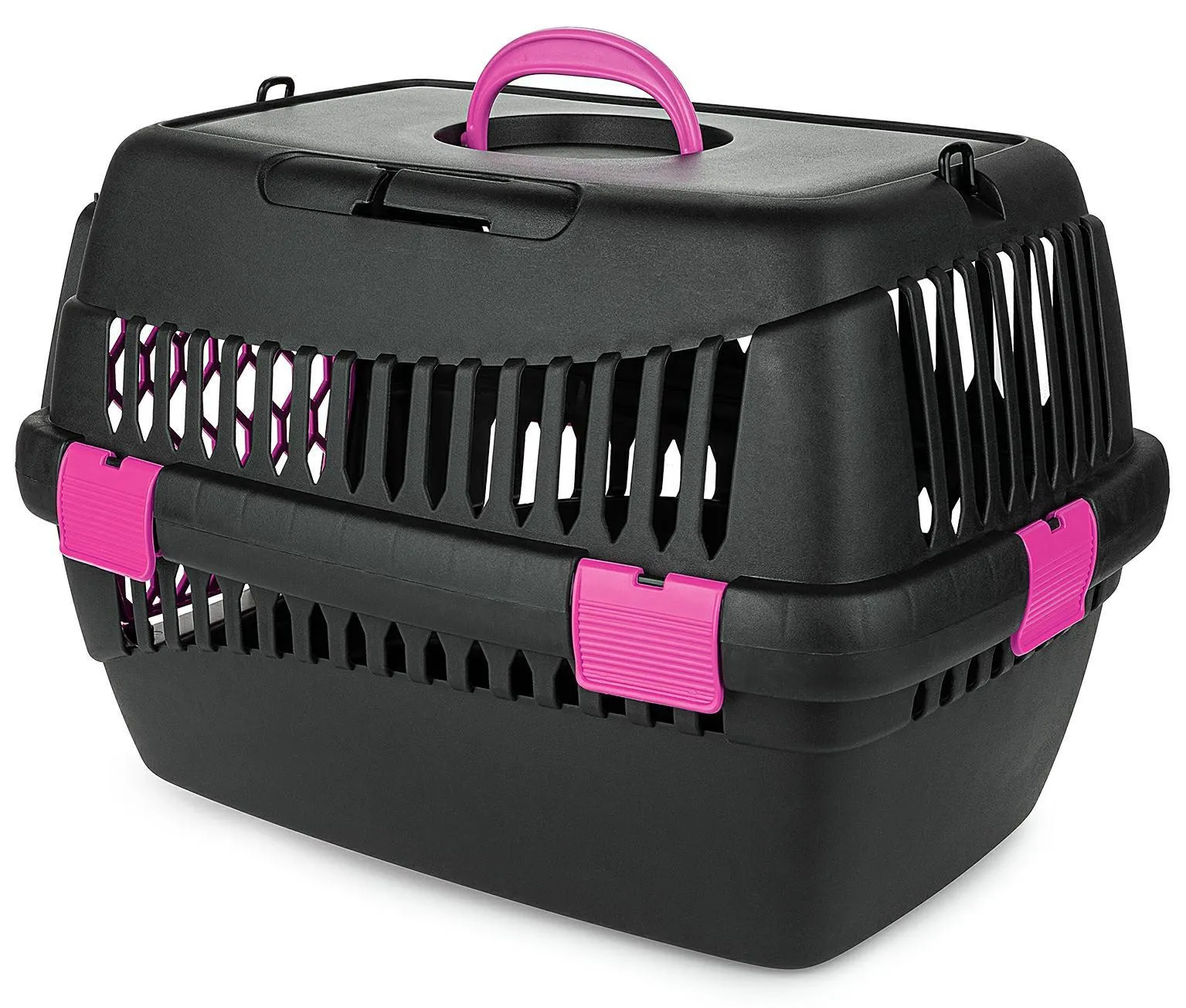 Transporter posiada wygodną rączkę oraz możliwość przypięcia pasami w samochodzie, co zwiększa bezpieczeństwo w trakcie podróży. W środku zwierzak ma wystarczająco dużo miejsca, a specjalne otwory wentylacyjne zapewniają mu odpowiednią cyrkulację powietrza. Dodatkowo, przednia krata jest łatwa do demontażu i ponownego montażu, co znacznie ułatwia korzystanie z transportera.